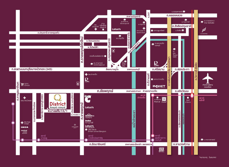 สถานีปากเกร็ด (สายสีชมพู) ประมาณ 8 กิโลเมตร*